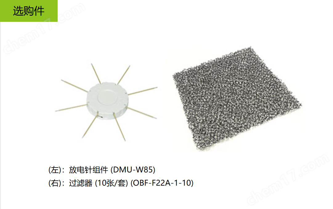 | 选购件 | 放电针组件:DNU-W85、过滤器(10张/套):OBF-F2ZA-1-10 |